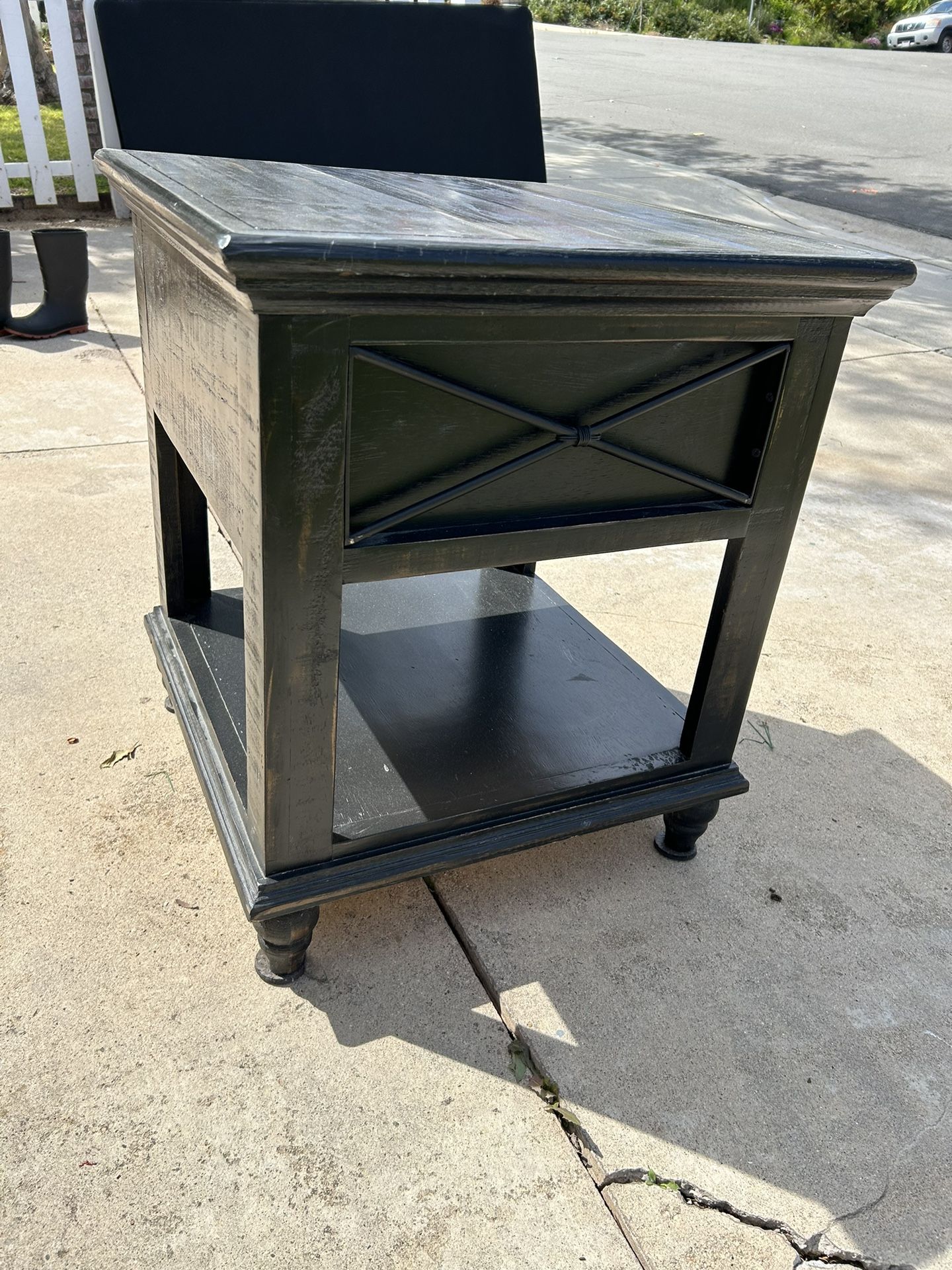 We only used this as an end table for about a year or so. Beautiful condition. It came distressed like this. We liked the style. Paid $150. Asking $30