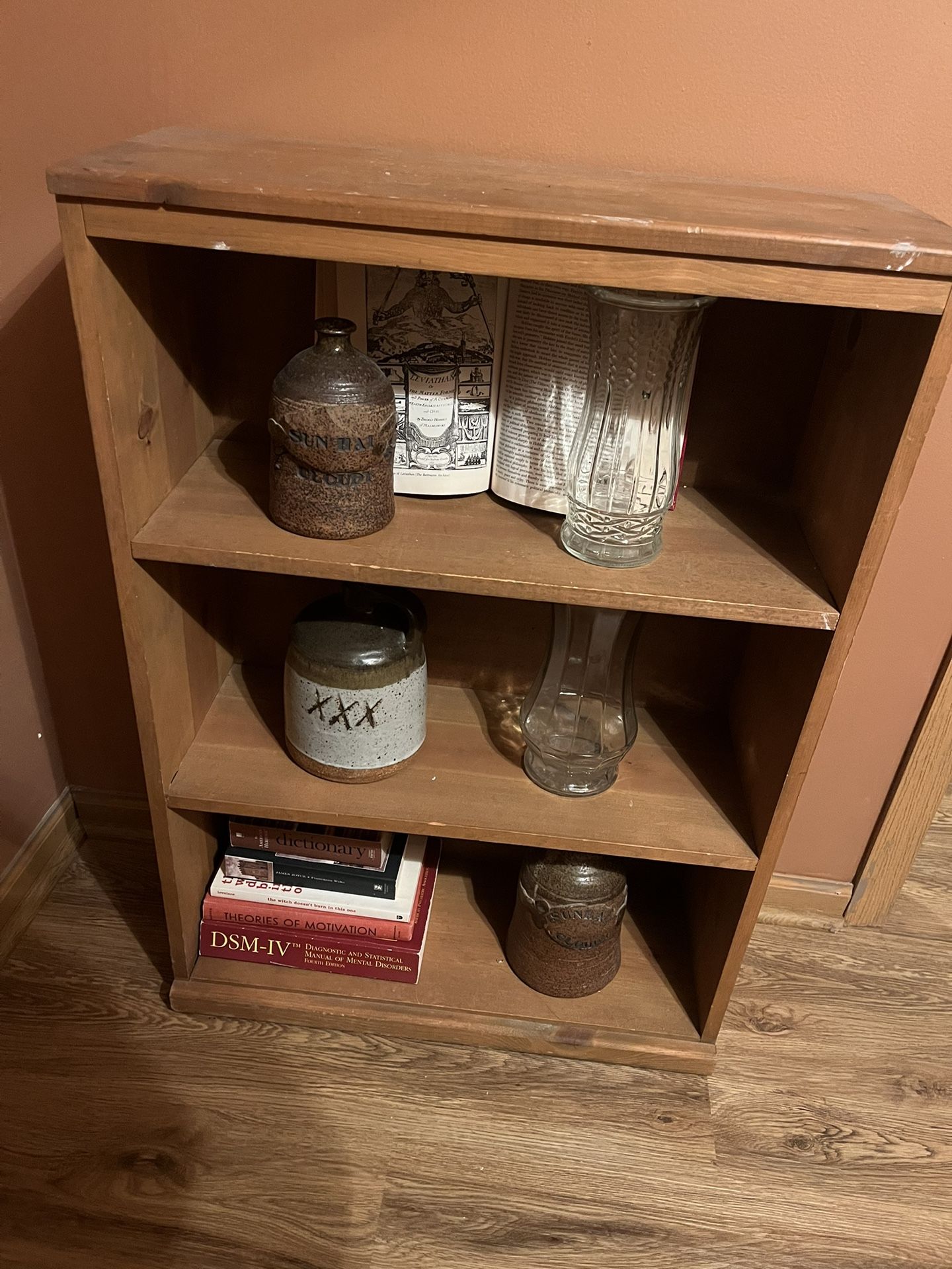 Three shelves. Solid wood bookshelf. Can be styled anywhere in the house
