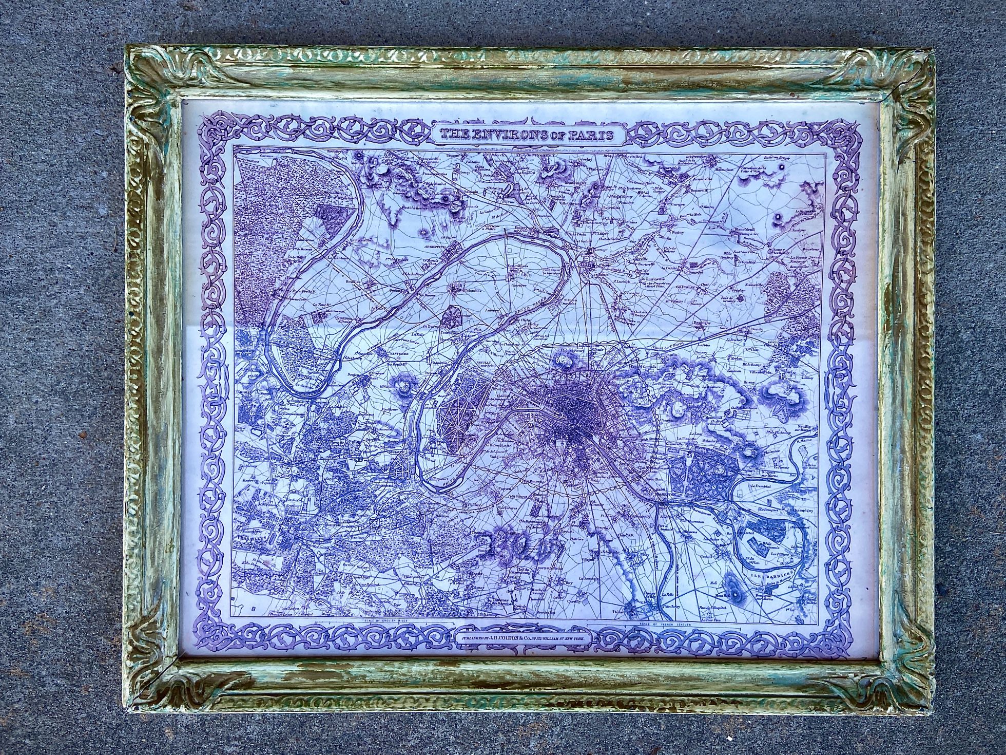 Elegant Antique Design Framed Map Of Paris—French Country, Shabby Chic, Cottage