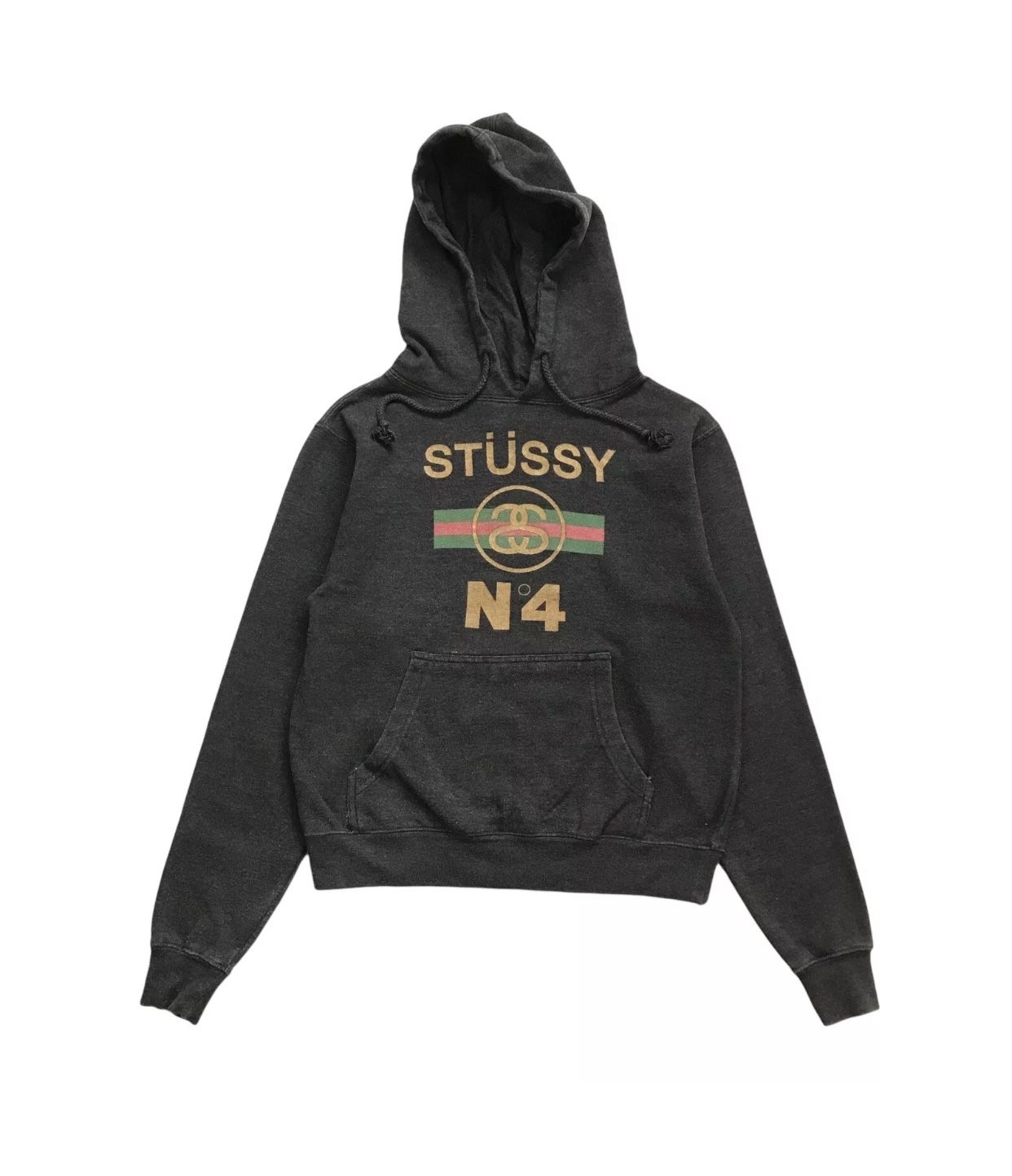 STUSSY HOODIE SMALL S YOUTH GREEN RED SWEATSHIRT PULLOVER SS LINK NO 4 VINTAGE