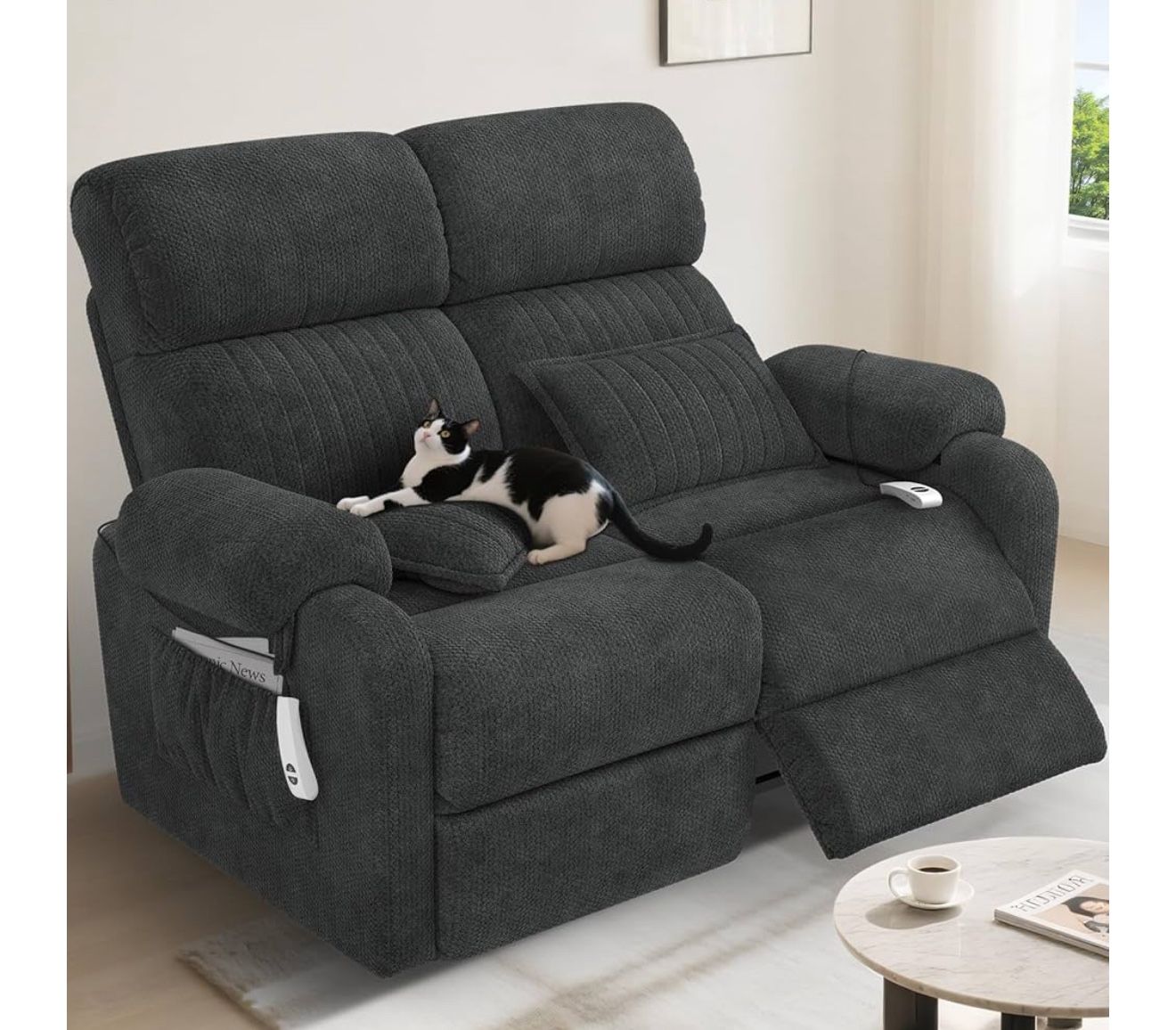 Power Loveseat Sofa, Gray Cloud-Like Velvet Zero Gravity Double Reclining RV Couch with USB & Type C Ports, Pillows, Side Pockets, 2 Seater for Living