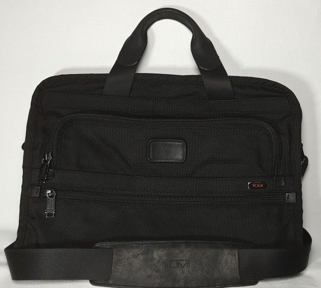 This Tumi messenger bag is a stylish and practical accessory for any man on the go. Made of durable black nylon, it features a spacious compartment for your laptop and other important items. The leather handles add a touch of sophistication to the bag, making it a great addition to any outfit. With its sleek design and spacious interior, this Tumi briefcase is perfect for commuting to work or traveling for business. The bag is also versatile enough to be used for personal purposes. Its black color and messenger style make it a timeless piece that will complement any outfit. This Tumi bag has seen it days of use. The exterior looks good but does have flaws the right insid of the second zipper nylon is unthreaded but corrected not as good as factory. The exterior does have some nicks on the nylon but not major tears. No tears or stains on the inside. Not perfect but it's functional and one of my favorite Tumis