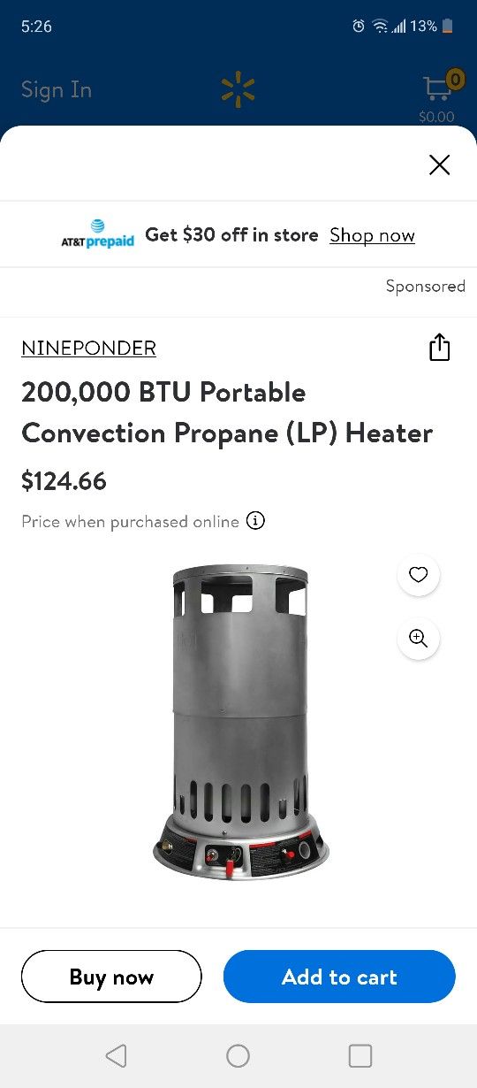 One portable aluminum portable heater propane 75 One 6 gallon heater propane or diesel safe w thermostat contractor series 125 One free standing dayglow heater covers 1000 SQ ft 75