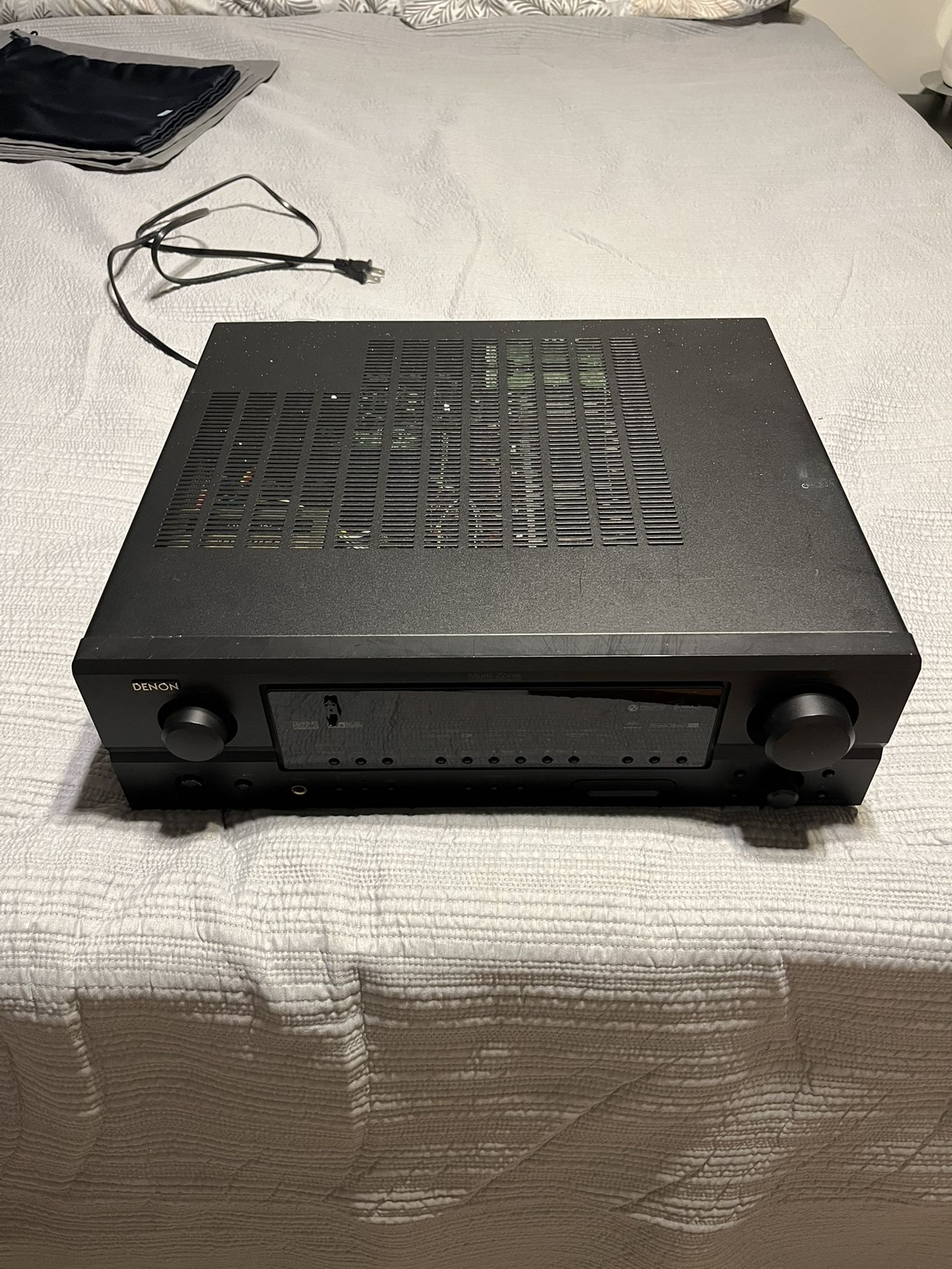 This is a DENON AVR-1707 7.1 Channel Home Theatre Receiver known for its strong Denon amplification, delivering clear, dynamic sound for movies, music, and games, with features like dual-room audio, XM Radio readiness, and auto-setup, though it lacks modern HDMI inputs and upscaling, relying on analog video conversion and featuring component video switching instead. It supports various Dolby and DTS surround sound formats, offers independent audio/video source selection, and includes digital/analog inputs, but some find its remote weak and sound can get less impressive at high volumes. In good condition. Powers on and works. Missing the remote as I used a universal remote.