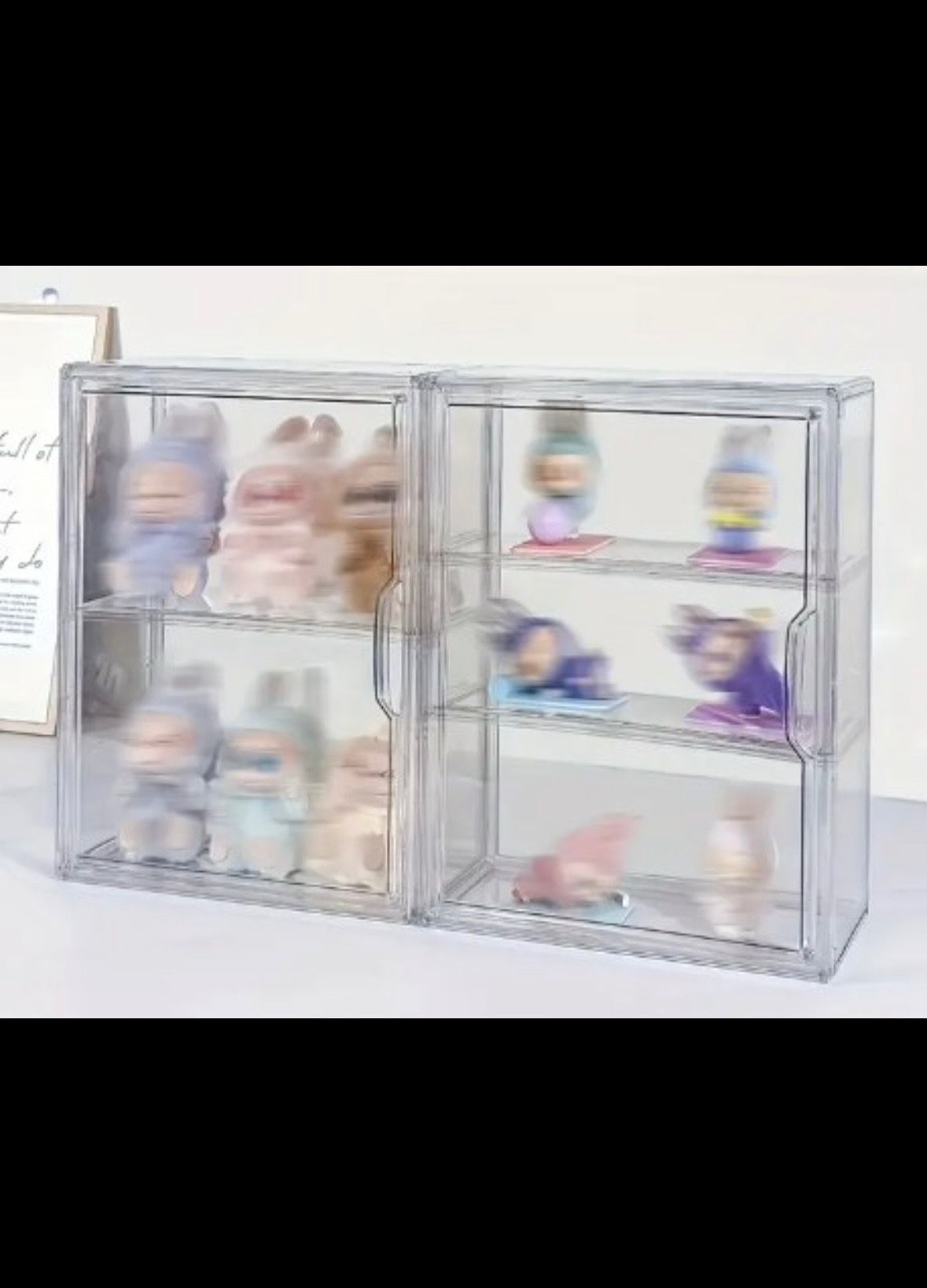 This transparent shelving box can be used to display your collectibles! It’s made of clear plastic with no screws easy to assemble in unopened box . Comes with adhesive tape to stick to your walls. Comes with three removable shelves Southeast Portland pick up