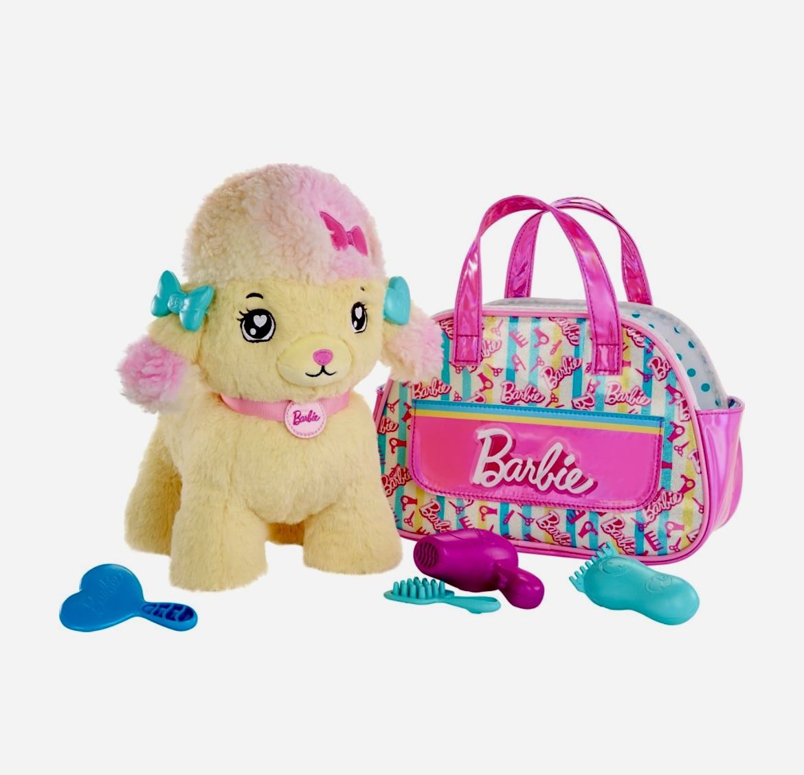 Barbie Plush Toy Playset,Hairdresser Poodle Stuffed Animal Lights 6 accessories