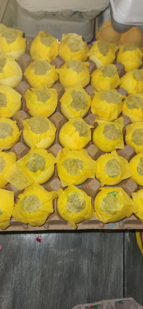 Eggs with color powder and confetti 30 eggs $12 18 eggs $8 12 eggs $5