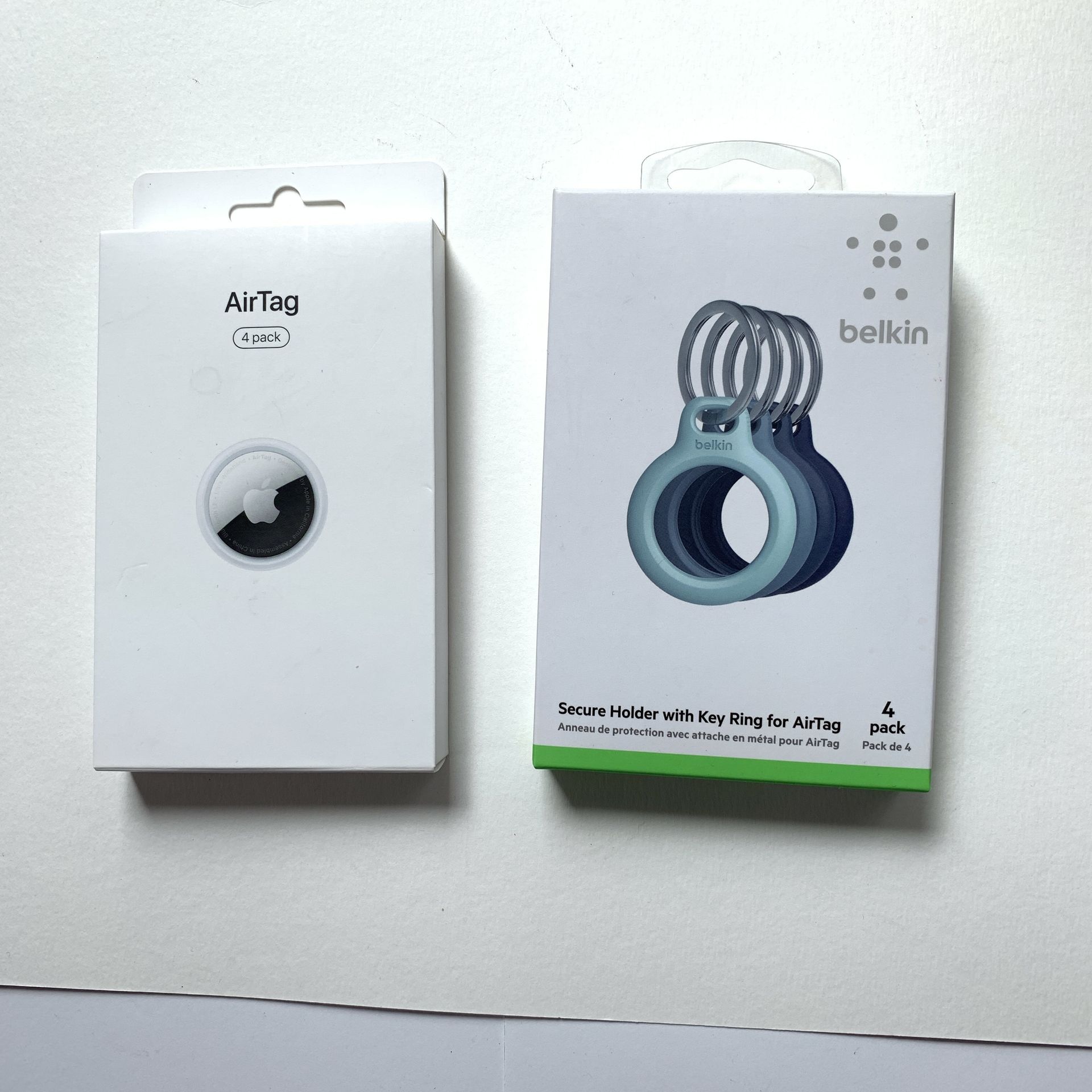 Bundle deal! Both are brand new, never been used. Apple AirTag 4 pack Belkin secure AirTag holder for key ring 4 pack
