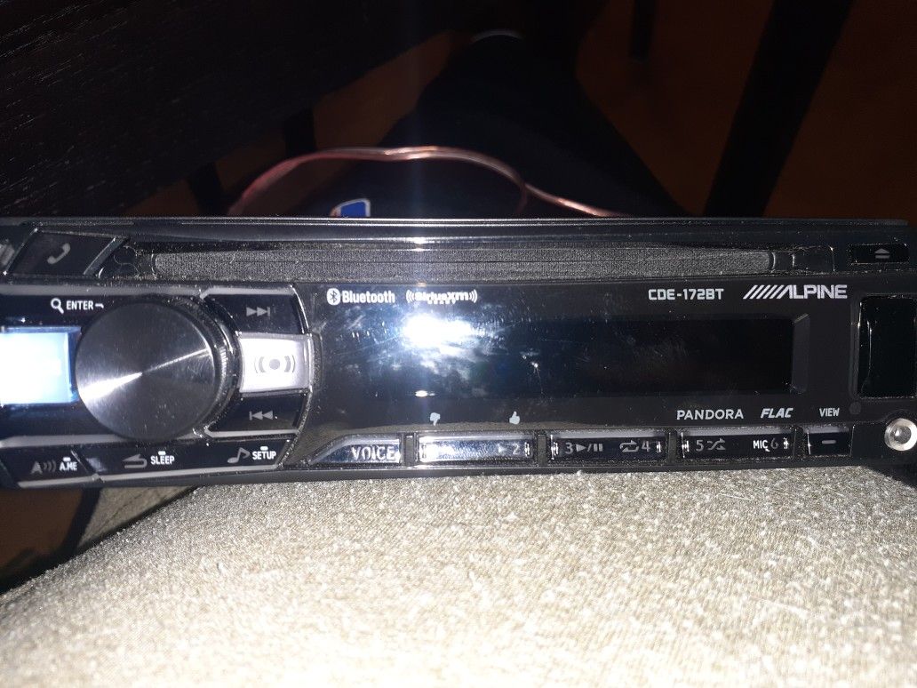 Cde-172bt alpine single din deck 2 years old hardly used has bluetooth Sirius xm Apple play Android compatible Pandora CD player USB Aux Steering wheel control compatible And more message more more information..i can install for a fee and I can test it out for serious buyers only