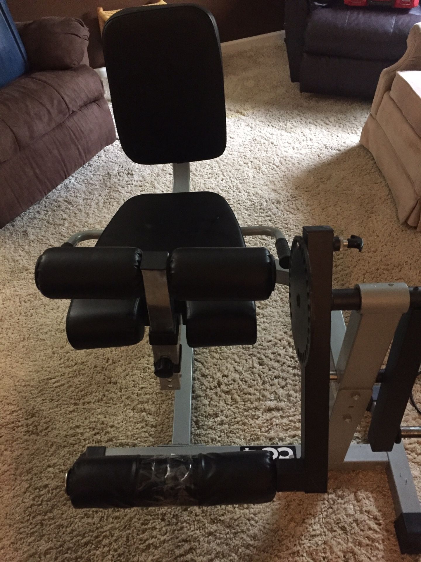 This is the VALOR CC-4 Combination Leg Extension/ Leg Curl machine Utilizing your own plate style weights! Not included! Excellent Shape other than front pad which has a tear and is taped! Extremely adjustable back pad moves forward several positions as well as the Knee pad! Seat is adjustable in height by a pin! And leg bar is fully adjustable for curls and extensions! Approximately four years old and always indoors! Very heavy steel construction with backing plates! Quality machine! Already disassembled for easy moving!