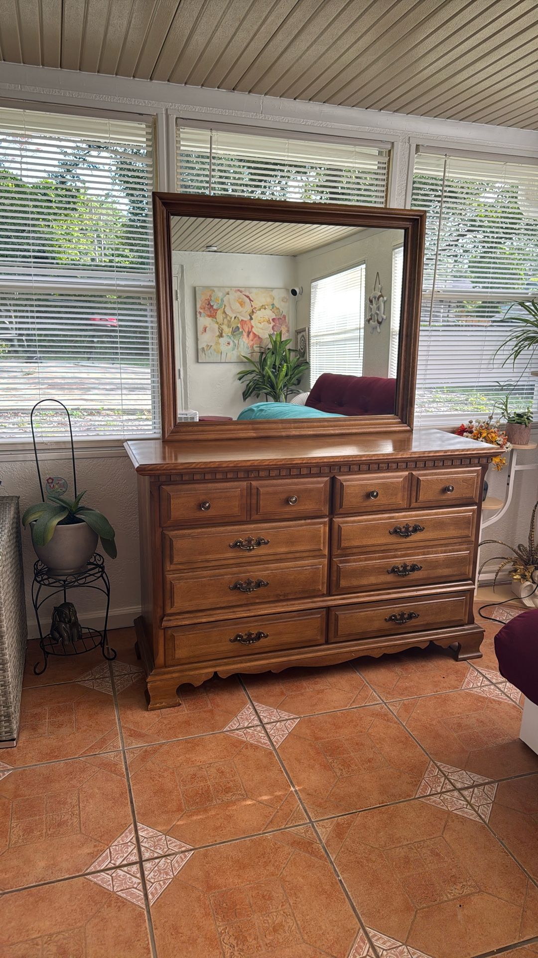 Solid wooden chest with mirror, in excelente condition