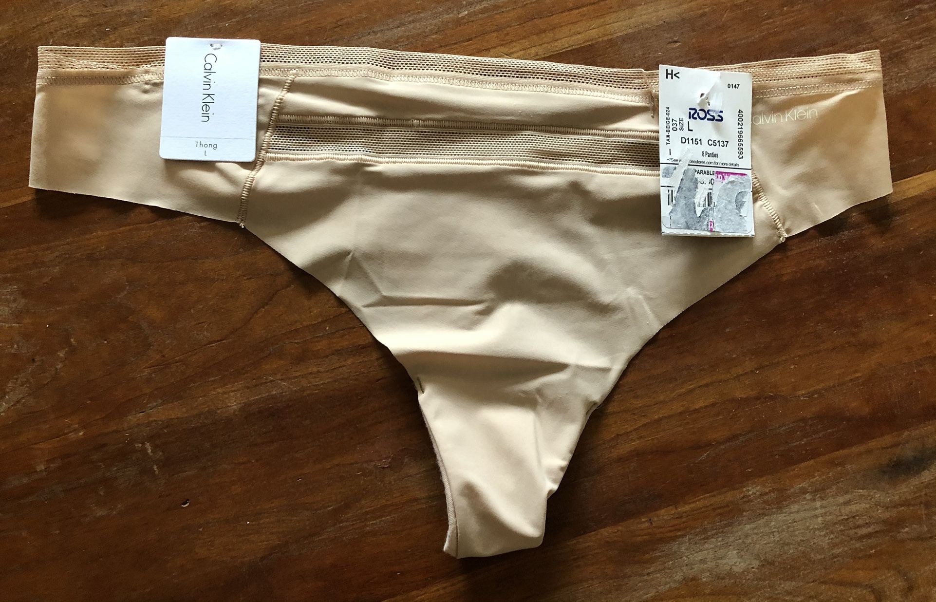 Calvin Klein Invisible Edge Mesh Tan Thing Size Large New w Tags