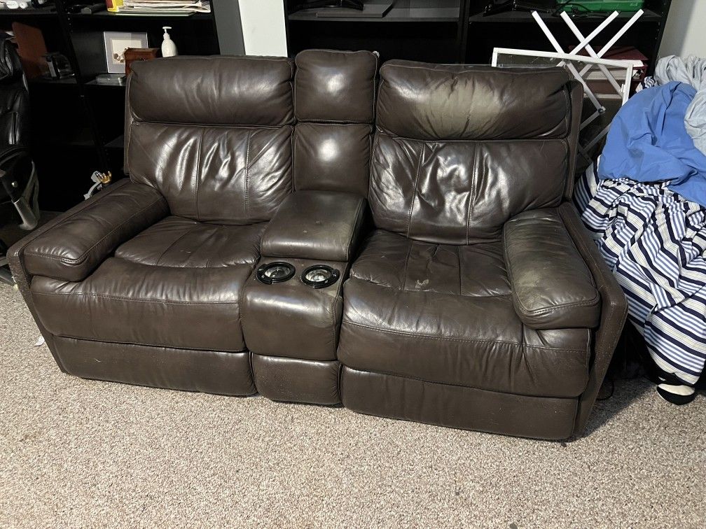 Brown leather loves you to Cedar with 5 recliner and a mid console with cup holders.This chair is https://offerup.co/faYXKzQFnY?$deeplink_path=/redirect/ does have the normal wear and tear. But it still works fine, and I'm not asking much for it. Brand new the it's in the thousands. Please let me know if you're interested asking 300 but make an offer