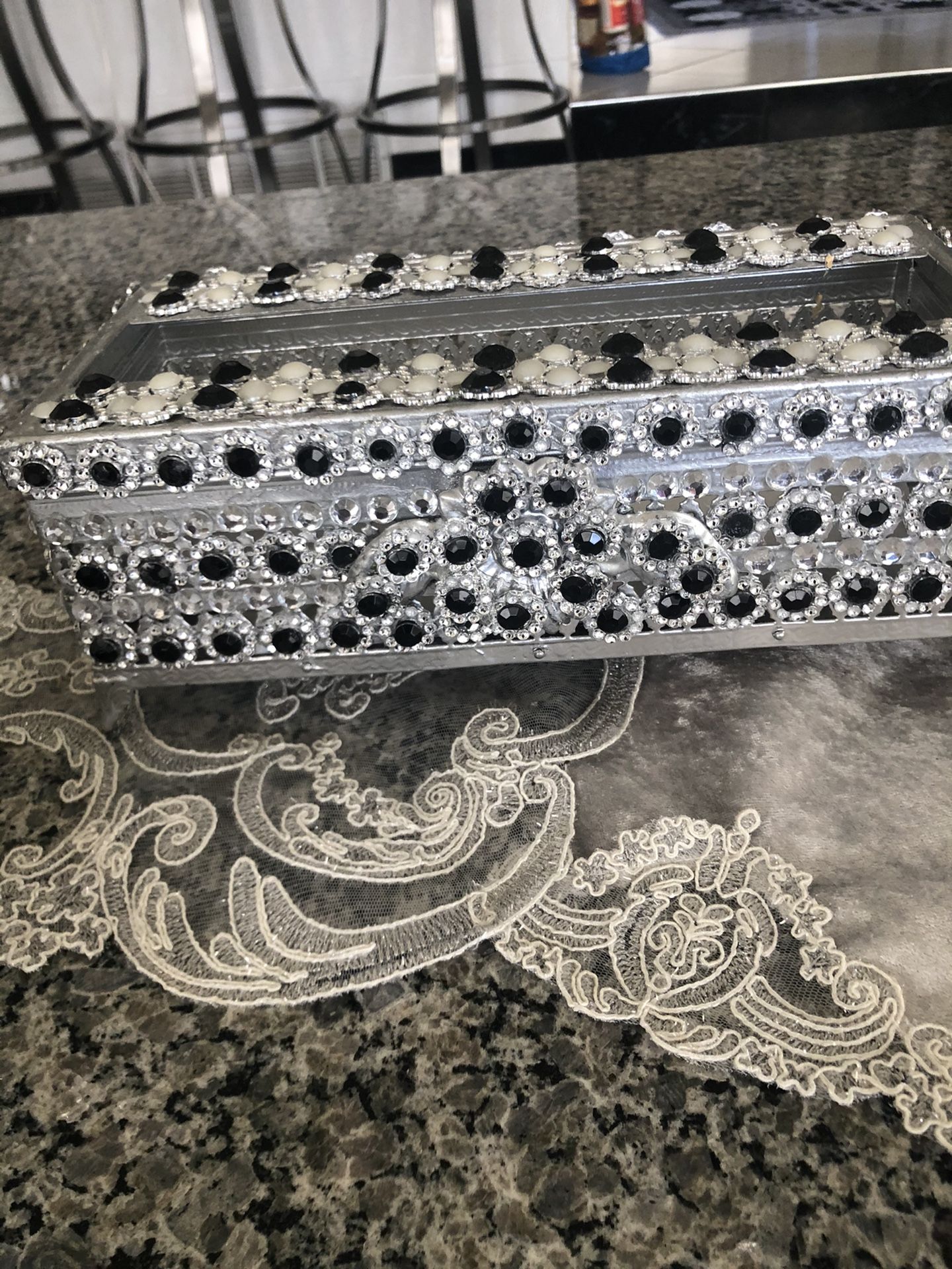 Box Napkins Silver & Black N W Stone ( handmade )