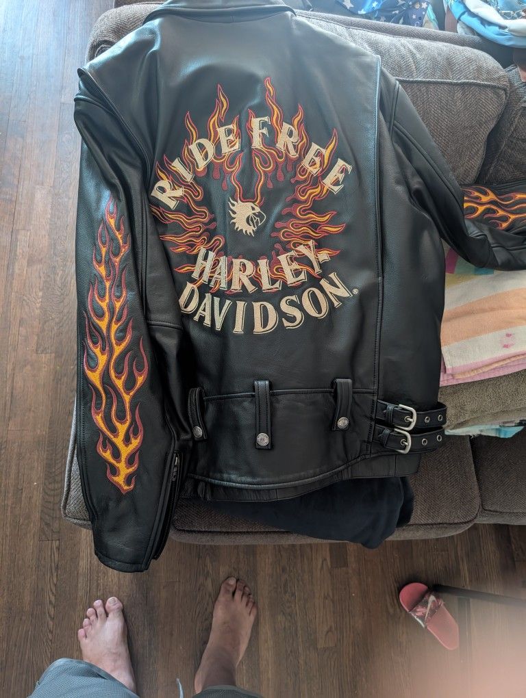 Harley Davidson Ride Free Flames Eagle Leather Motorcycle Jacket Mens XL