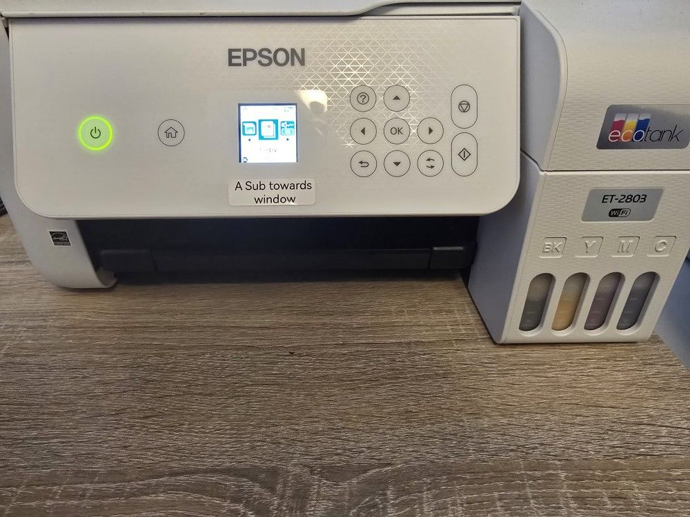 Epson ET-2803 inkjet printer that has been converted to sublimation in great working condition and still prints great. • Model: Epson ET-2803 • Converted for sublimation printing • Recently cleaned printed great no issues 📍Priority to fast Porch Pickup
