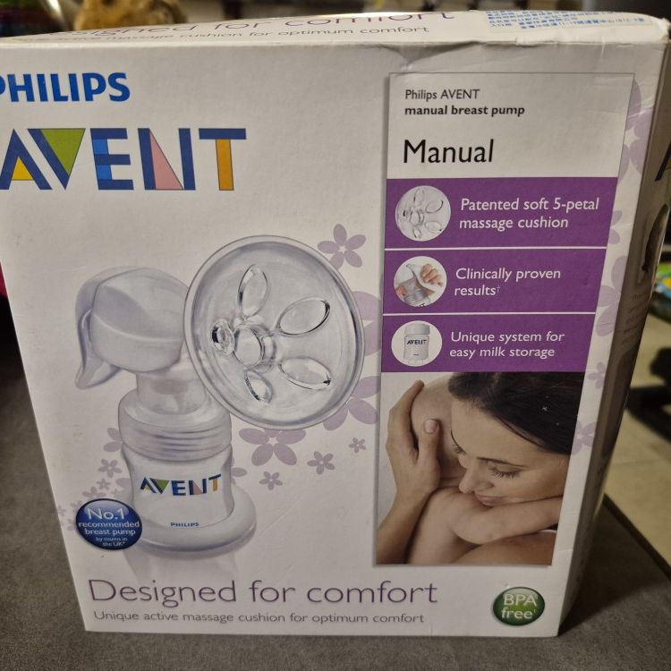 Brand New! Retails for $50!! Philips Avent Manual Breast Pump, model SCF310/20 Features a patented soft 5-petal massage cushion for comfort Designed to be BPA-free Includes a unique system for easy milk storage Operates manually, requiring no batteries or electricity