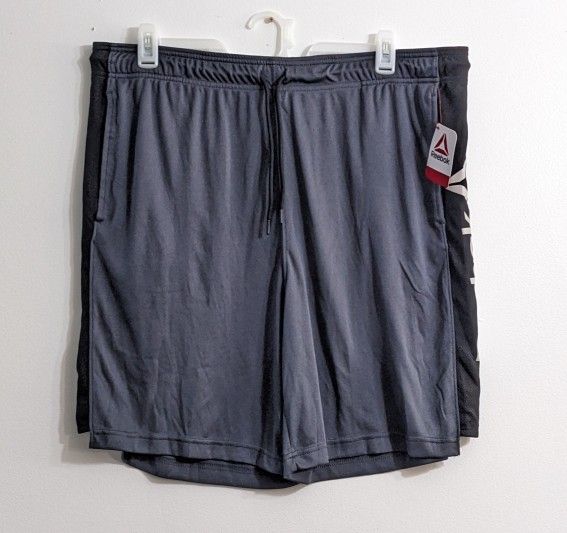 Brand New With Tag. Reebok Men's Gray Active Knit Training Shorts. Size 2XL. 100% Polyester. Quick Dry Fabric. Breathable Shorts. Equipped with two pockets, an elastic waistband branded with the Reebok logo, and drawstring closure. The shorts hug the waist for a snug fit while the rest of the shorts hang perfectly on the hips and legs.
