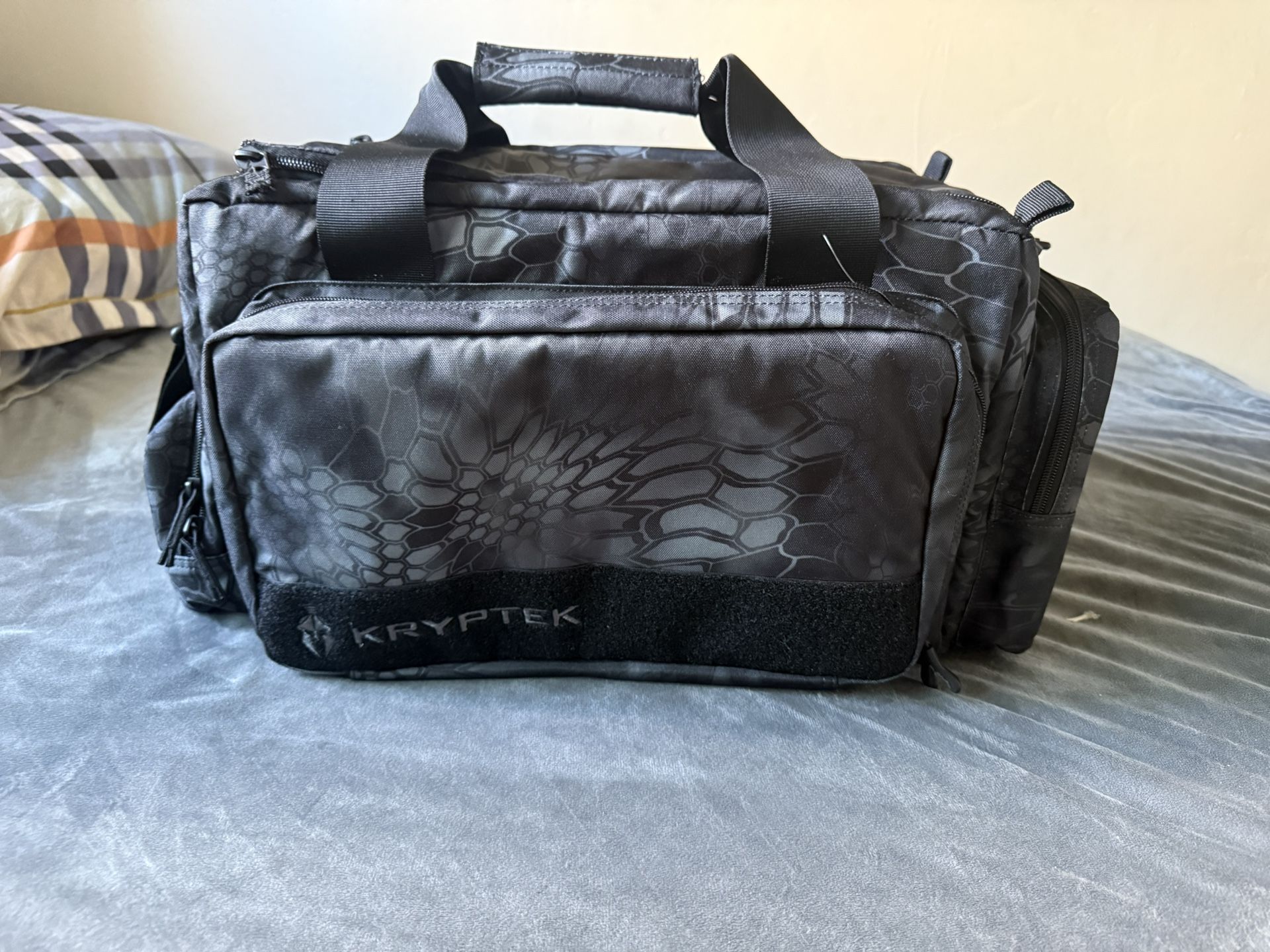 Brand new Kryptek Ethos Collection range bag in camo pattern. High-quality, durable construction with multiple compartments and built-in magazine holders. Measures approximately 14” W x 20” L x 11” H, offering plenty of storage space. Originally designed as a range bag, but it’s very versatile — perfect for fishing gear, camping, tools, travel, or general storage as well. Comfortable carry handles and heavy-duty zippers make it reliable for everyday or outdoor use.