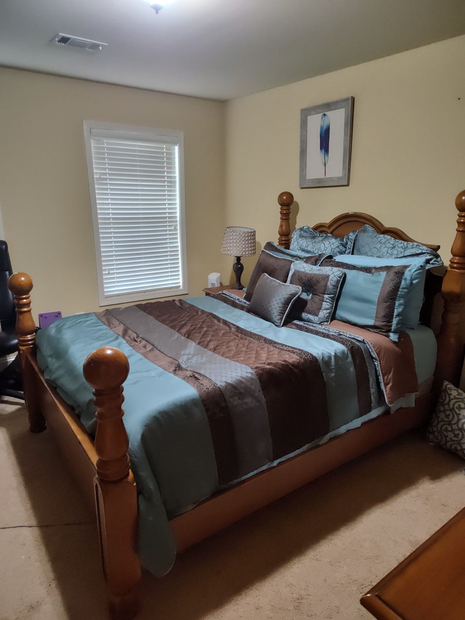 ***Queen Bedroom Set β Real Wood β $750 OBO *** Moving soon and must sell! Good to fair condition β solid real wood. Set includes: Queen bedframe + mattress Dresser Nightstand Chest of drawers All for $750 (negotiable). π Pickup only. Message if interested!