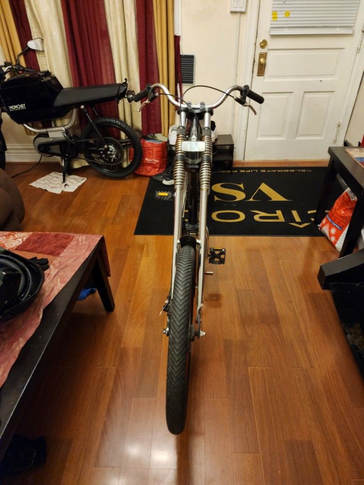 Schwinn OCC Spoiler •7'5" in length, 72LBS •8/10 Condition-Chrome Has rust spots Mostly Under the Seat and Front Spring, Minor Dents on Front Fender and Rear Fender. •Everthing is original other than One Bolt and Water bottle holder. •100% Ridable Breaks Still work. Asking $1400 OBO, Go for Over $2000+ on eBay and FB Marketplace. Delivery is available for a fee or Free if the Price is Right.