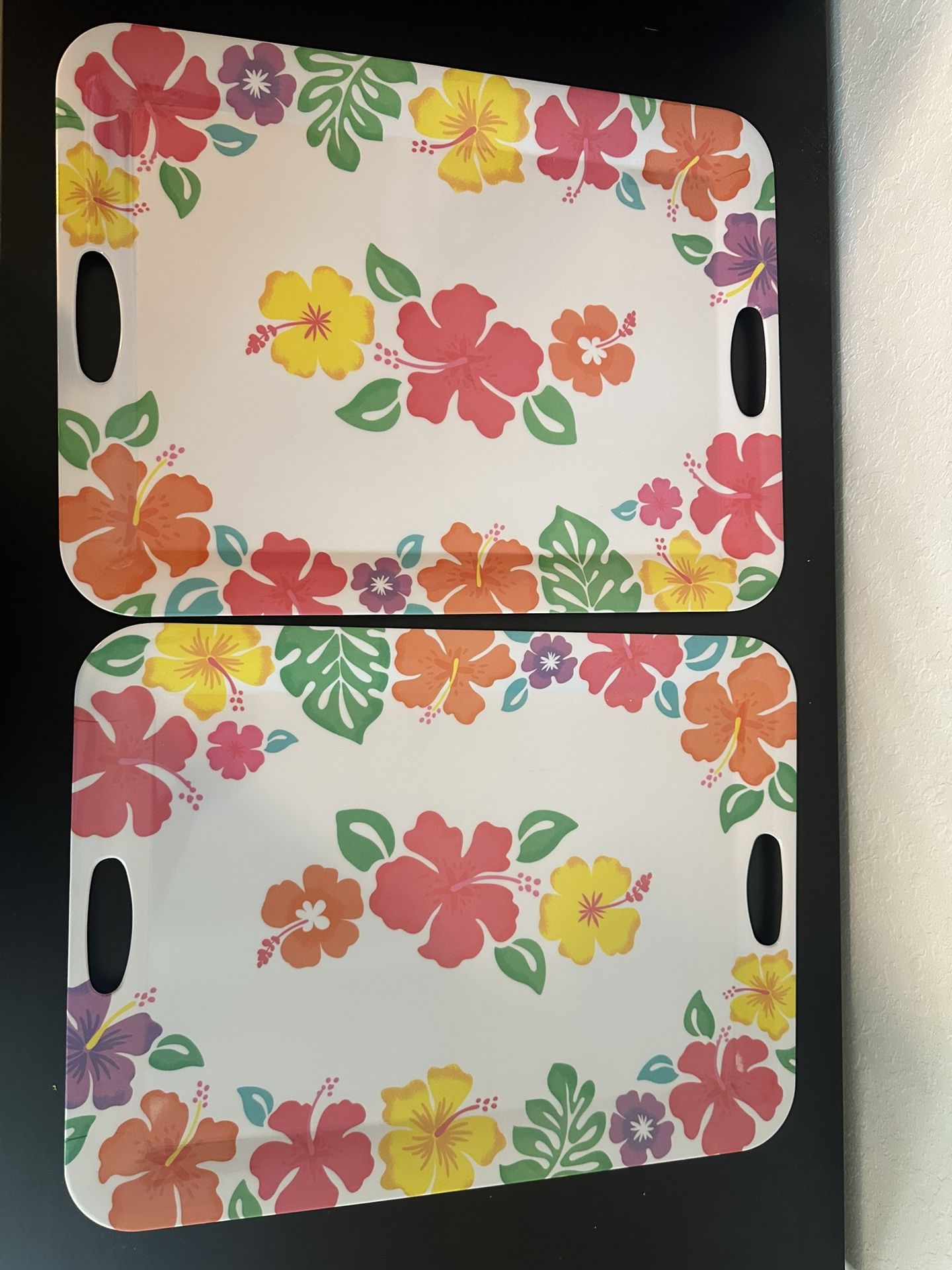 • 15 Balloons - $3 • “Aloha” streamer - 33 inches long - $3 • Two (2) serving trays - 14.5 inch by 19.75 inch - $15 each • Four (4) Hibiscus flower garlands - 6 feet long (pink or orange flowers) - $15 each Or everything for $60