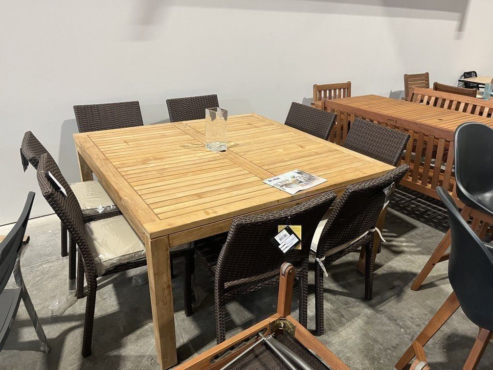 Modern 9PC Square Dining Set – FSC Solid Teak Wood + Wicker Chairs | Open Box | Commercial Grade Heavy Duty | Outdoor Patio | Closeout Deal + Delivery