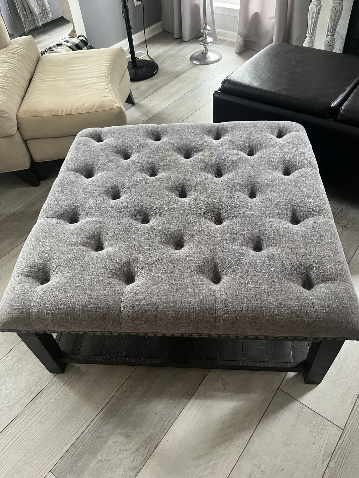 Extra Large Square Tufted Grey Ottoman With Nail Head Trim 39x39x18