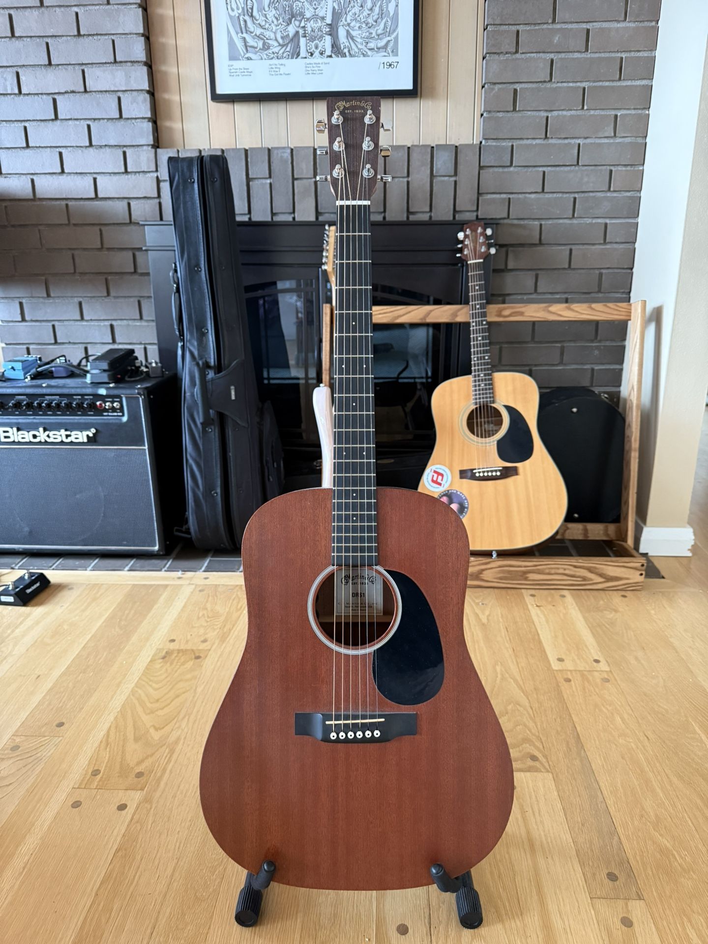 Electric acoustic DRS1 Martin guitar. Made in Mexico, this guitar is made with Sapele vs the typical mahogany of classic Martins. It boasts a dark, rich, woody tone. Additionally it contains a simple Piezo pickup powered with a 9V battery. Plug and play, everything works well. I suspect it’s over a decade old now so it has some typical dings and scratches. I’m selling because I just don’t play it, my personal preference is for a spruce top. This would be a good first guitar for the aspiring singer-songwriter in your family. Alternatively, use it to round out your collection, it’s a nice guitar to look at. Comes with case. Make me an offer! Edit 1/17: lowered price
