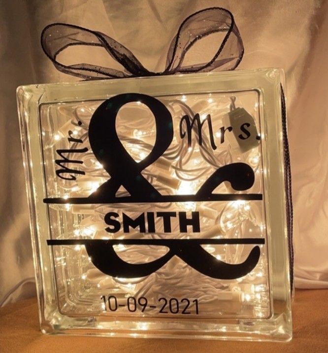Personalized Mr. & Mrs. Wedding Glass Block Night Light