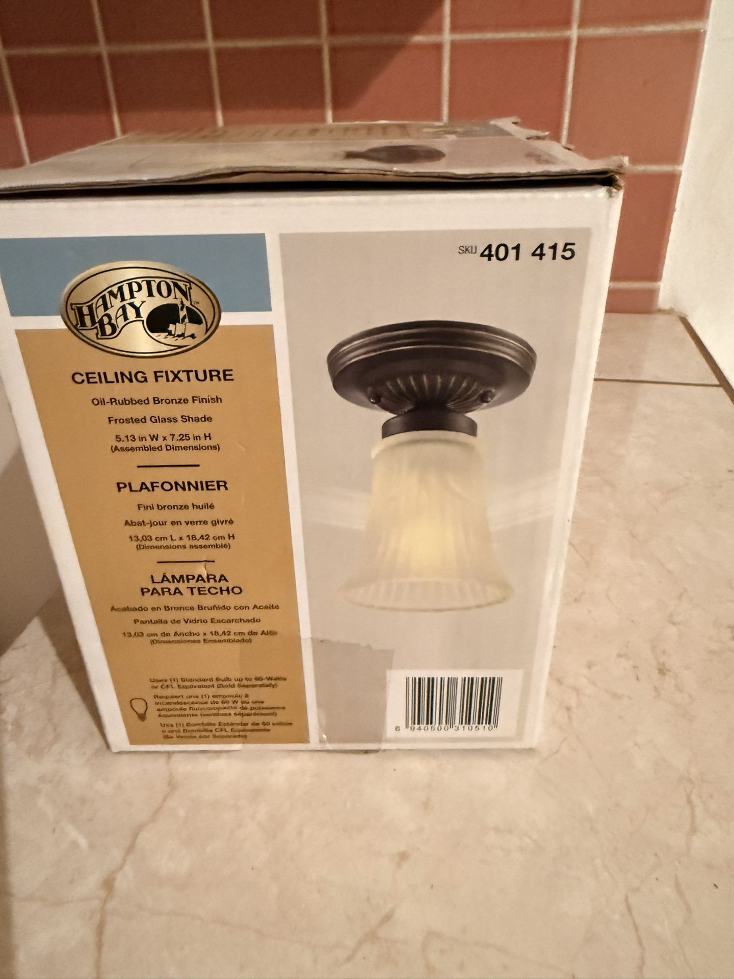 New in Box Hampton Bay 5 in. 1-Light Flush Mount Oil- Rubbed Bronze Finish with Frosted Glass Shade Pick Up and Cash only please. North Hollywood