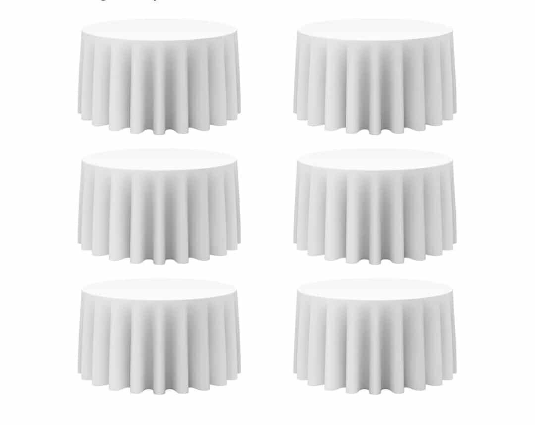 New 6 Pack White Round Tablecloths 120 Inch - Circle Bulk Linen Polyester Fabric Washable Table Cloth Cover for Wedding Reception Banquet Birthday Par
