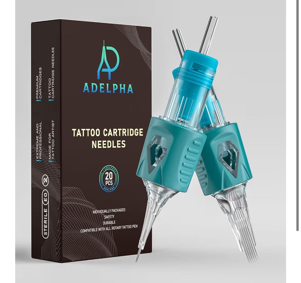 Brand: ADELPHA 20Pcs 1209RM Tattoo Cartridge Needles Standard Round Magnum Professional Disposable Tattoo Needle with Membrane. Brand new. Never been used. Still in the box. Package Content: 20 Pcs of 1209RM. Get crisp lines and detailed tattoos every time. Perfect for artists seeking "tattoo needles" that combine surgical-grade precision with long-lasting performance across all skin types. These tatoo needles are compatible with 99% of machines Hardened Steel & Precision Craftsmanship: The tattoo cartridge needles deliver exceptional sharpness and durability. The precisely aligned needle tips ensure smooth penetration with minimal skin injury, while the reinforced construction prevents bending during prolonged sessions Optimized Ink Flow System: This scientifically designed tattoo needle tips and reservoirs guarantee flawless ink delivery. The tapered needle mouth prevents clogging, enjoy uninterrupted sessions with consistent ink saturation from first to last stroke, eliminating blotchy results Ergonomic Hybrid Grip Design: Experience ultimate comfort with PC plastic housing wrapped in soft silicone sleeves. The anti-slip textured surface on tattoo needle cartridge provides secure control during intricate work, reducing hand fatigue Individually Sealed Packaging: Every tattoo cartridge needle comes in a single-use pack, ensuring absolute cleanliness for each person. The package guarantees zero cross-contamination, meeting the highest industry standards for safety. Giving you the confidence to focus solely on your art