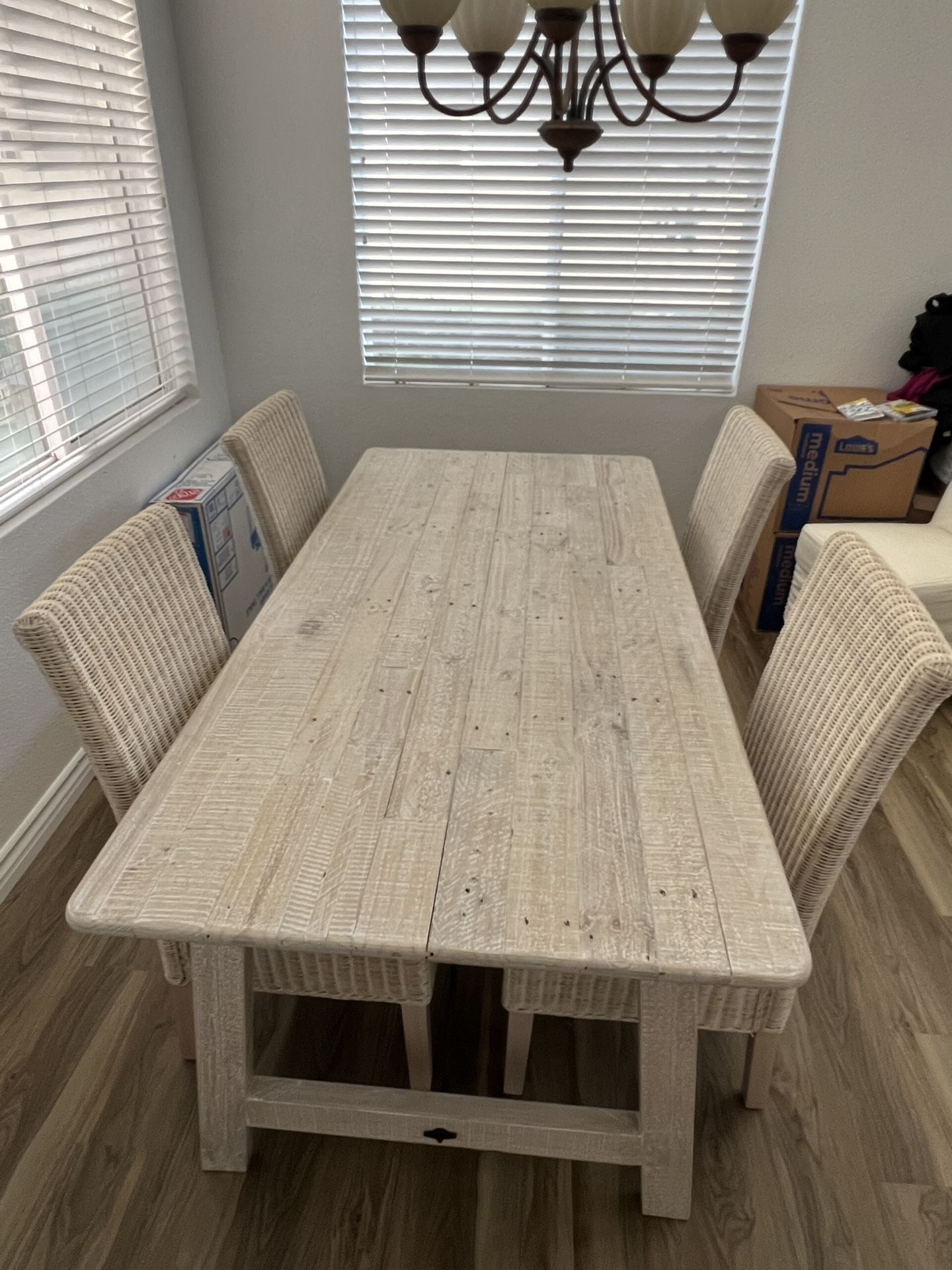 Table and four chairs set. Condition is brand new, only ever been assembled, never used. Pick up only!