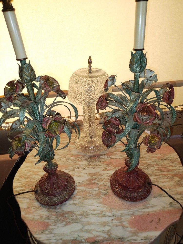 Gorgeous pair of ornate Italian tole lamps in perfect condition.