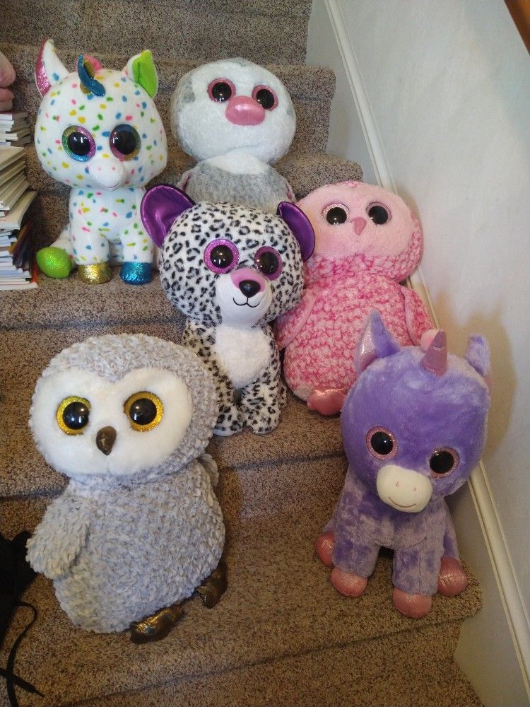 These are still in very good clean condition. Some of them do have normal scratches from play on the eyes where pictured. These are the very large ty beanie boos. They are 16 inches tall. Pick up and cash only please. Pick up in between Holland road and Dam neck road in Virginia Beach Virginia 23453. If you are looking for other beanie babies or beanie boos I have a ton of other things listed in all different sizes and other posts if you want to check out my other posts We are willing to negotiate but we do want a fair negotiation because these are my kids that they are trying to sell to make money for themselves. Take all 6 for $50 cash or $10 each