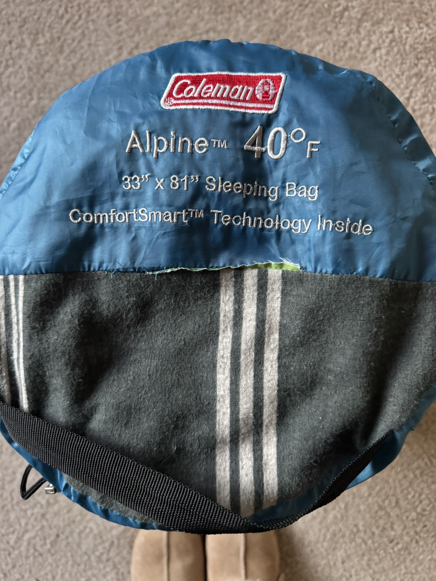 Coleman sleeping bag alpine, used in good condition. Smoke free home. $19 cash. OBO Bethany area.