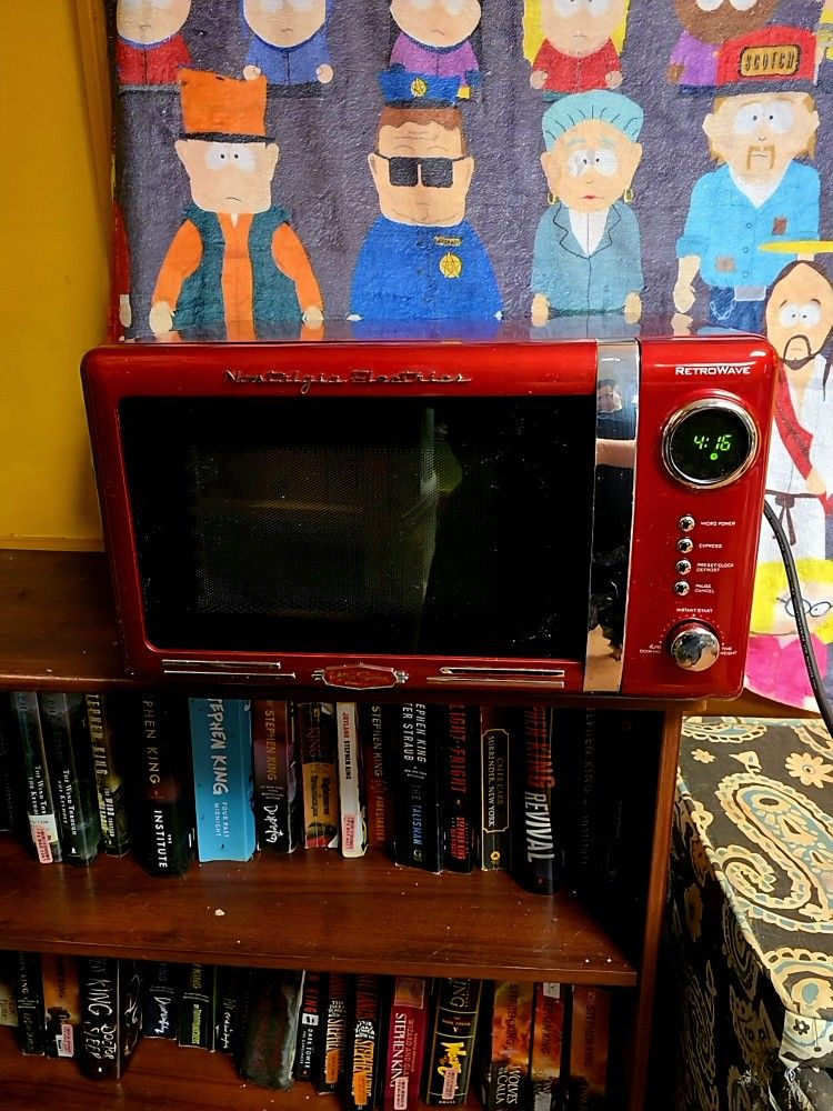 Description was copied and pasted from the Lowe's website on the exact same microwave. Link below. https://offerup.com/redirect/?o=aHR0cHM6Ly93d3cubG93ZXMuY29tL3BkL05vc3RhbGdpYS0wLTctY3UtZnQtNzAwLUNvdW50ZXJ0b3AtTWljcm93YXZlLVJlZC81MDEyMTI5MQ== The Nostalgia RMO770RED Retro Series 0.7 Cubic Foot 700-Watt Microwave Oven is a sleek, retro design that will complement any kitchen. Featuring 12-pre programmed features and bright LED display makes usability simple. The 5-power levels and 700-watts of power are perfect for reheating leftover to cooking food. Powerful 700-watt oven with 0.7 cubic foot capacity LED display with digital clock 12 pre-programmed cooking setting for variety of dishes and delay timing Cooking setting controlled by turn-and-push program dial Chrome door handle and accents Cord length 56 inches Turntable diameter 9-5/8 Interior dimensions are 11” W x 11” D x 7” H