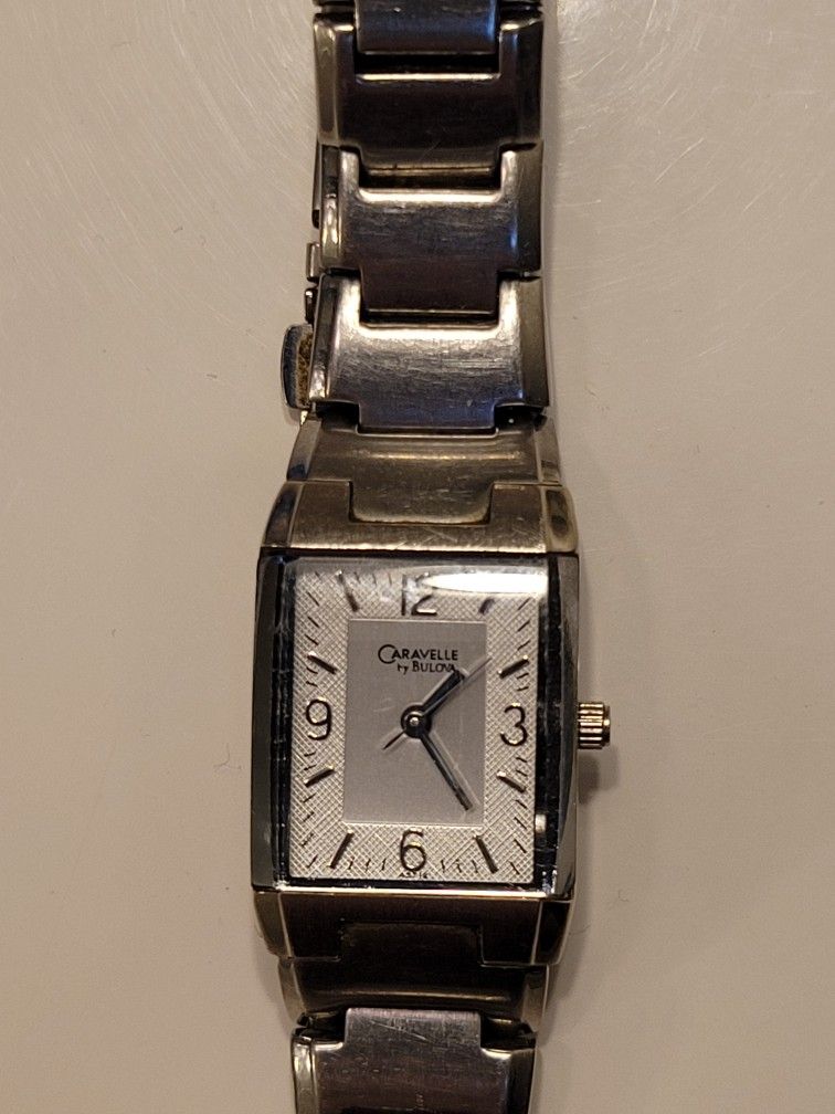 Like new silver Carvelle Bulova for sale. Retail $200+ asking for $20. For someone w small wrists as u can see in the photos