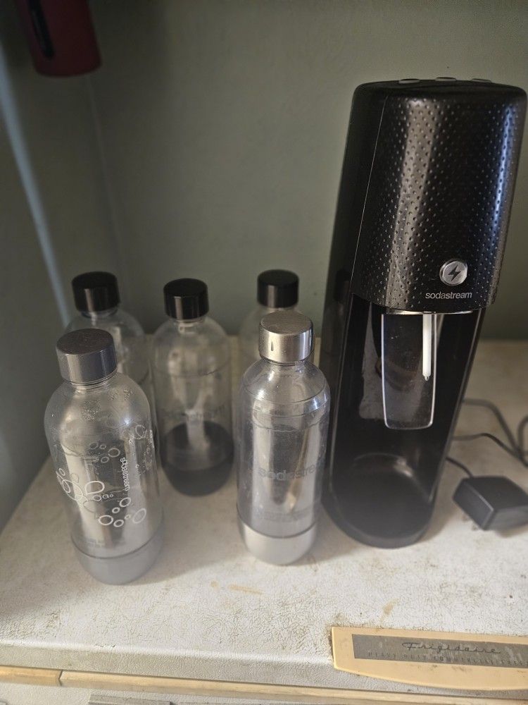 Comes with sodastream machine over 20 bottles with lids in different sizes and 1 partly used co2 and 2 new co2 canisters asking $75 Pick up only in arvada Cash only