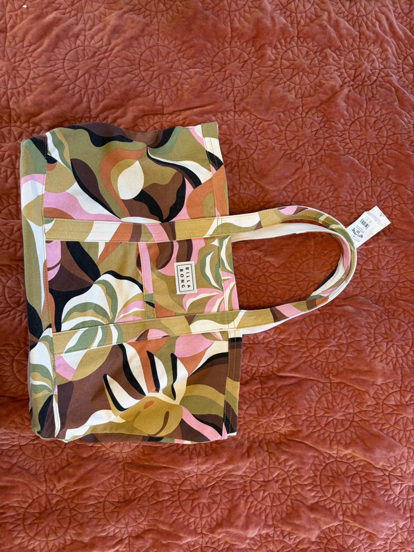 ☆ billabong mod abstract pattern tote| NWT | $15 + shipping 。price negotiable ! bundle 2 save ! tagged for exposure ! #cute #aesthetic #girly #chic #comfy summer skirt shorts aesthetic fruit cool linen interesting quirky unique billabong surfing bikini beach sand shore sea