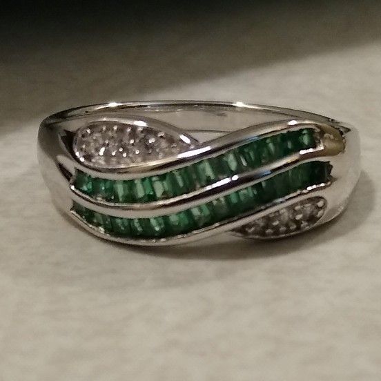 NEW Beautiful Sterling Silver Green And White Sapphire Valentine's Day Ring! ππ