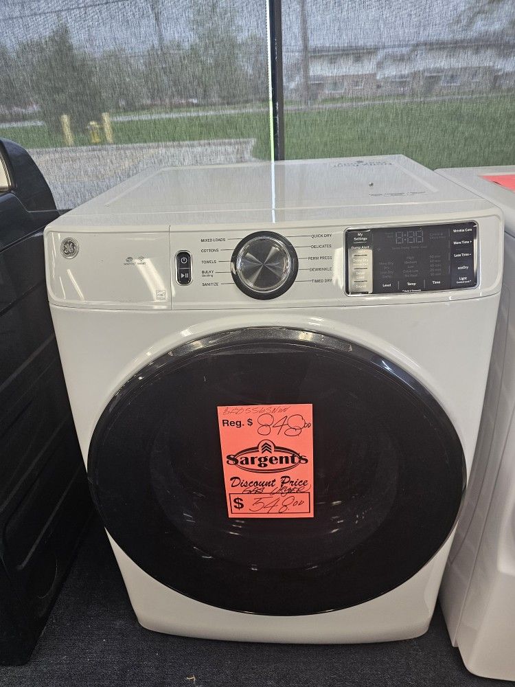 GFD55GSSNWW GE® 7.8 Cu. Ft. White Smart Front Load Gas Dryer One year manufacturer's warranty. Out of box. As-is condition. Available for viewing 9 a.m. to 1 p.m., Monday through Saturday. Please message to schedule a time and location.