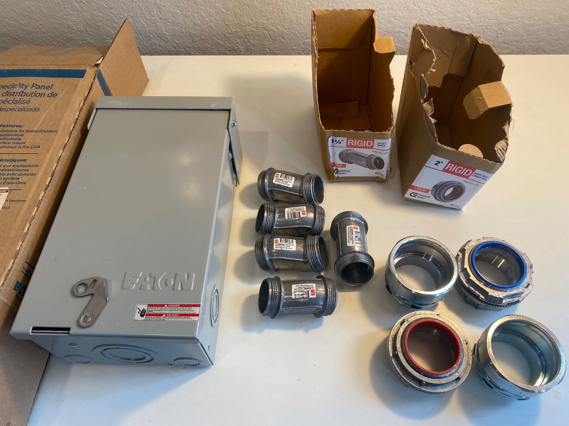 Eaton power supply panel and conduit. Everything in the pictures come together, this is brand new equipment never used. Please feel free to ask any questions you may have. Thank you.