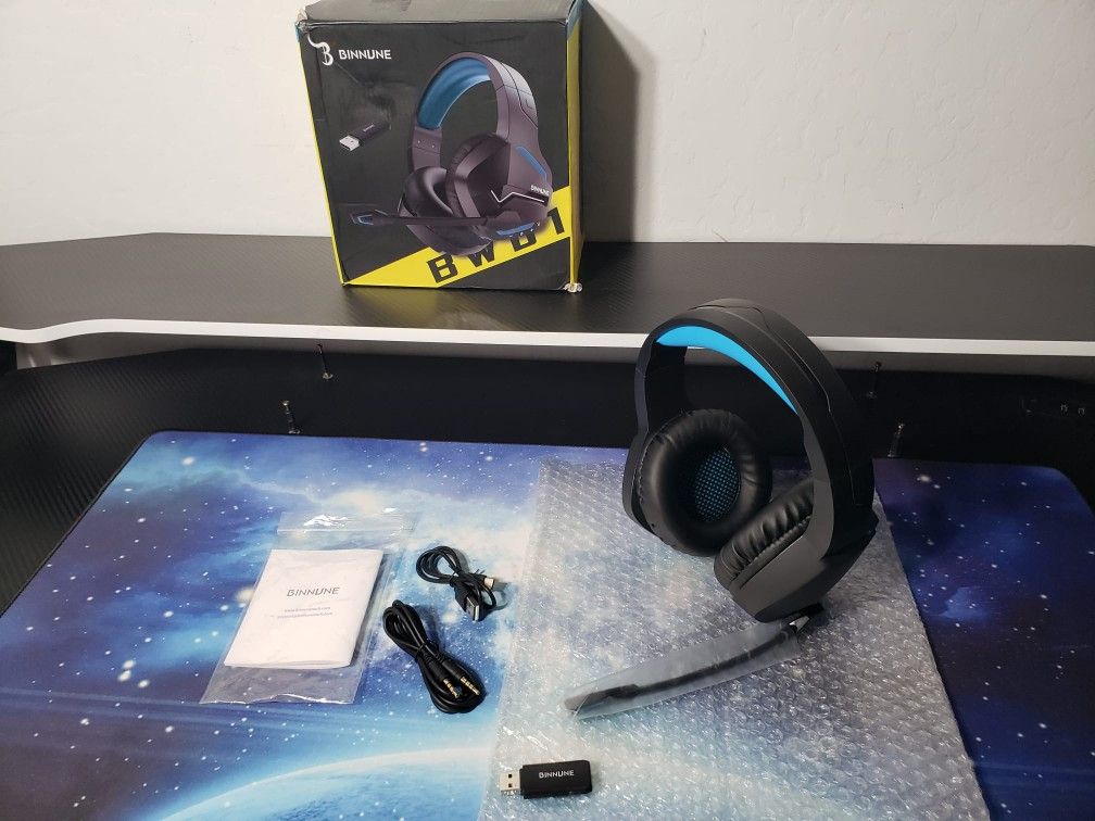 Hablo Español Brand new, opened box. Comes as shown in pictures. Tested with no issues New BINNUNE Wireless Gaming Headset W/ Microphone for PC PS4 PS5, 2.4G Wireless Bluetooth USB Gamer Headphones W/ Mic for Laptop Computer, Blue [High Performance 2.4G+Bluetooth 5.0] BINNUNE wireless gaming headset combines high performance 2.4 GHz lossless wireless for Pro-level gaming audio on PS and PC , with the convenience of simultaneous Bluetooth connectivity for most of your mobile devices. [Simultaneous Wireless]Elevate your gaming experience with our SmartSwitch Dual Wireless Gaming Headset. Seamlessly toggle between 2.4GHz and Bluetooth modes with just two quick taps of the power button, granting you the freedom to connect to multiple devices hassle-free. Dive into gaming without limitations [Extraordinary Battery Life] Thanks to an impressive 120-hour battery life and fast USB-C charging, the BINNUE gaming headset is your ideal for listening music or playing long session video games throughout the day on a single charge. [Hear Every Details] The 50mm driver plus 2.4G lossless wireless emphasizes both subtle and critical in-game background sounds, allowing you to hear very details, so you will never miss a step or shot during game playing. [Ultra- Low Latency Wireless Gaming] Features ultra-low latency 2.4GHz lossless wireless for high fidelity audio, the audio latency is less than 38ms which is far more better than Bluetooth 150ms, no audio and video to be out of sync issue, so you can enjoy an immersive lag-free wireless gaming experience. [Ultra Compatible With Multiple Devices] Your game headset is compatible via 2.4GHz wireless connection on PC, PS; 3.5mm audio jack is compatible with PC, Mac, laptop, PS, Xbox, NS Switch , cell phones and VR. Bluetooth is compatible with most of your Bluetooth enabled devices. (Please check the connectivity guide for compatibility on user manual) Original price: $39.99 plus tax Our price: $19 no tax First come first served please Located on S 70th Ave and W Lower Buckeye Rd, in Phoenix Check out more brand new discounted items in my offers
