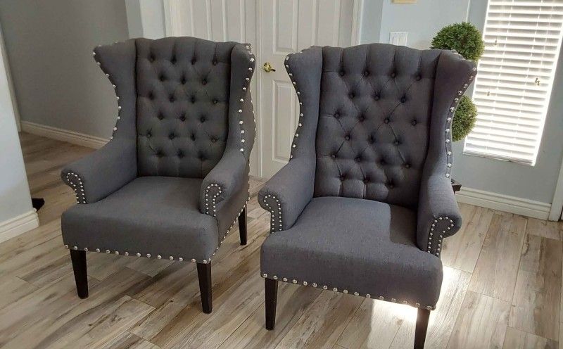 Two beautiful gray wingback tufted accent chairs Great condition $400 for both