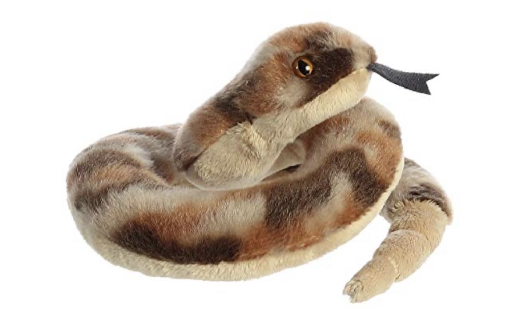 Aurora stuffed rattlesnake. Shades of brown. Measures about 8”. High quality materials and hand construction makes for a unique and soft touch. Quality materials for a soft cuddling experience Unique floppy pose. New! 6