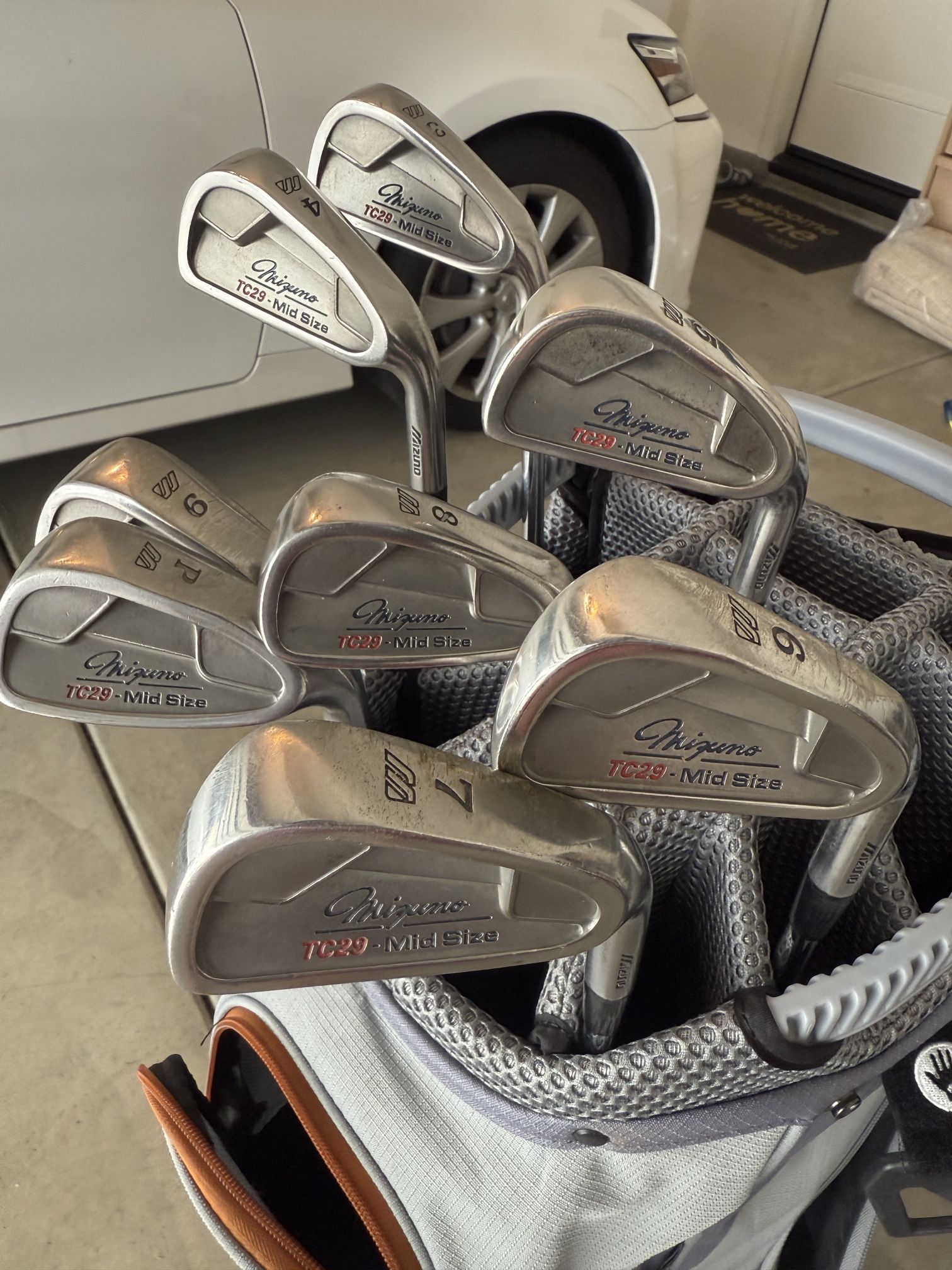 Selling a full set of Mizuno TC-29 Mid Size irons, including 3 iron through pitching wedge (3–PW). These are excellent beginner to high-handicap clubs and a great way to get into Mizuno irons without spending a lot. • Forgiving cavity-back design • Mid-size heads inspire confidence at address • Smooth feel typical of Mizuno forged irons • Ideal for newer golfers or players looking for an affordable upgrade