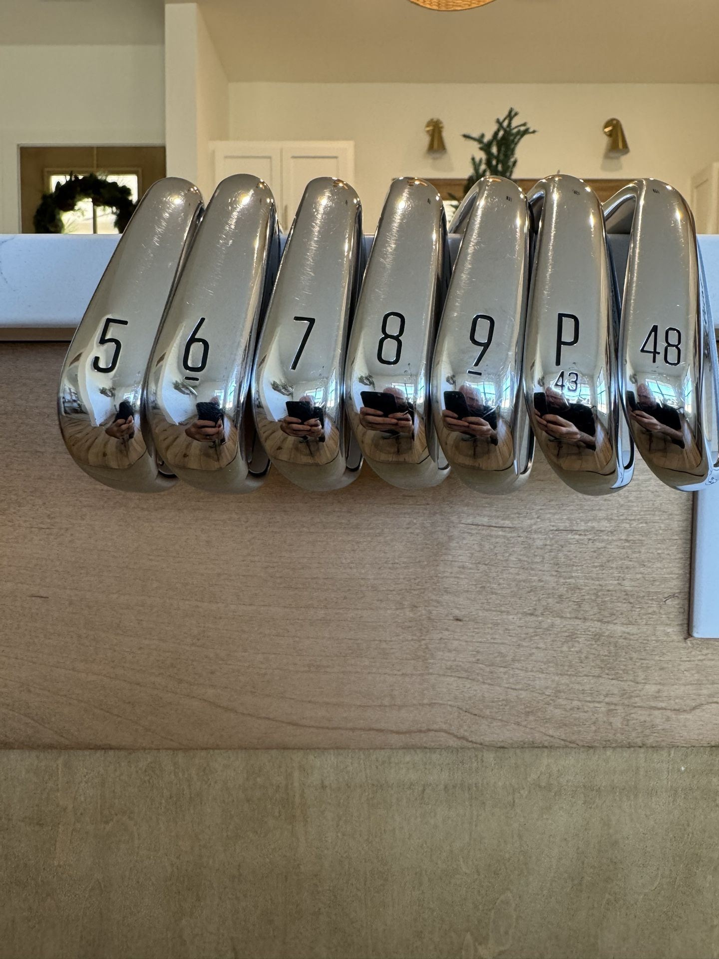 Mint condition. Titleist T200 irons with the upgraded TENSEI shafts. 5, 6, 7, 8, 9, PW, 48 Degree Wedge Bought for $1199.00 + tax. Only selling for $550 or best offer. Cash only. No trades. Happy to meet you in person to check this set out! BONUS! Irons also come with 2 brand new boxes of Titleist AVX golf balls!