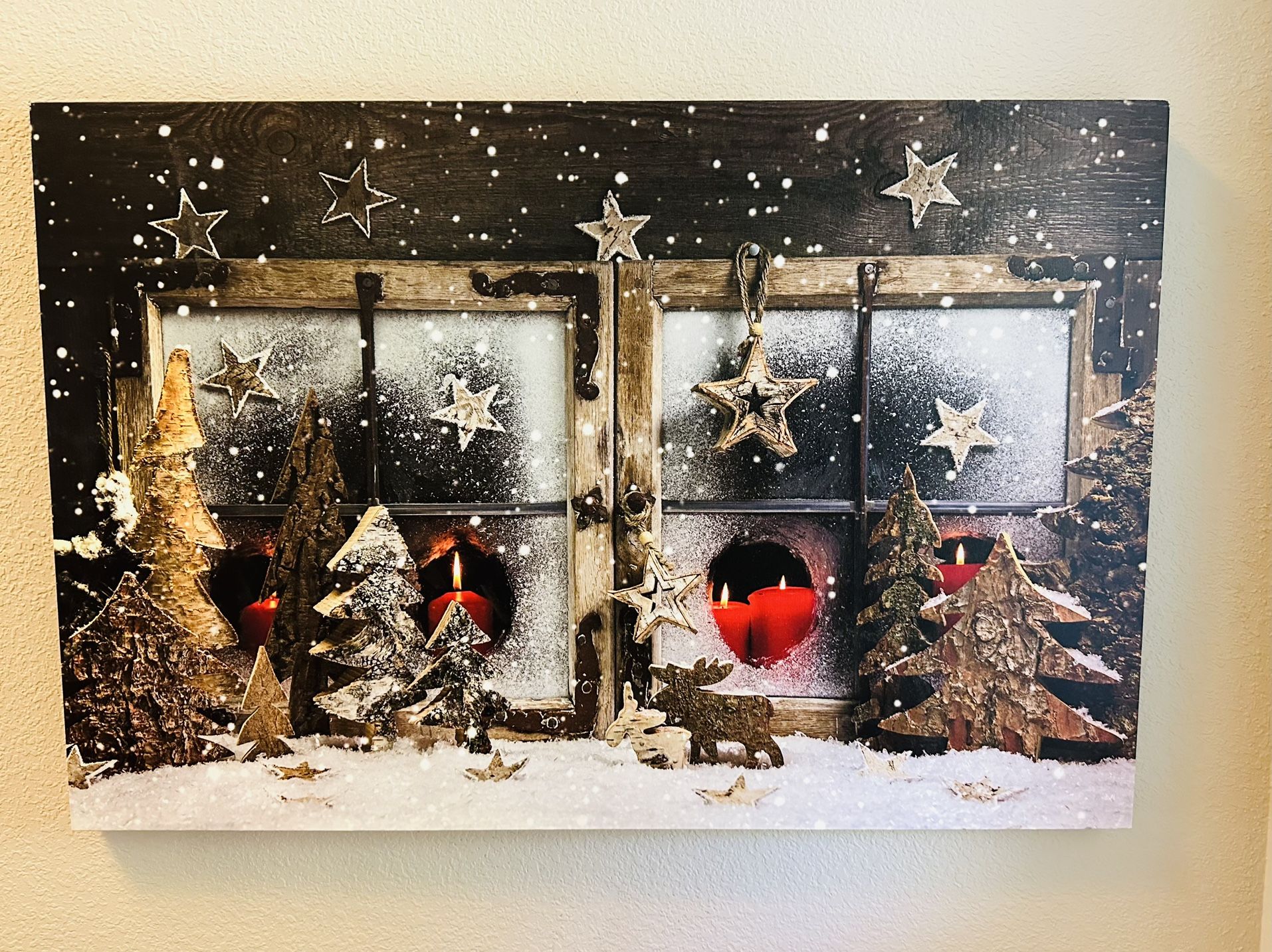 Beautiful wall art for holiday decorating. Purchased from Great Big Canvas. Size is 36” x 24”. 1.25” thick. Sawtooth hanger tab pre-installed. Artist grade canvas, patented, warp-resistant construction, hard-sealed back. From the Shutterstock Collection. Original retail price $324.99.